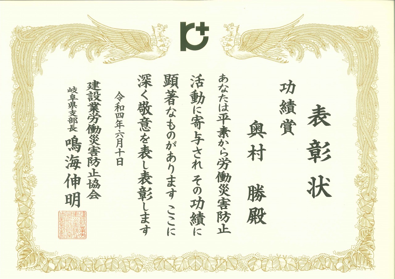 建設業労働災害防止協会の岐阜県支部長より