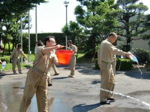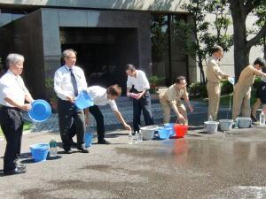 本日は(社)西濃建設業協会依頼の「環境を守る建設業」の取り組みの一環として、【打ち水大作戦2010!!】実施しました。
