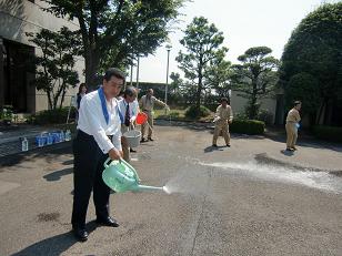 本日は岐阜県建設業協会(西濃)中心に開催している「打ち水大作戦2011」
