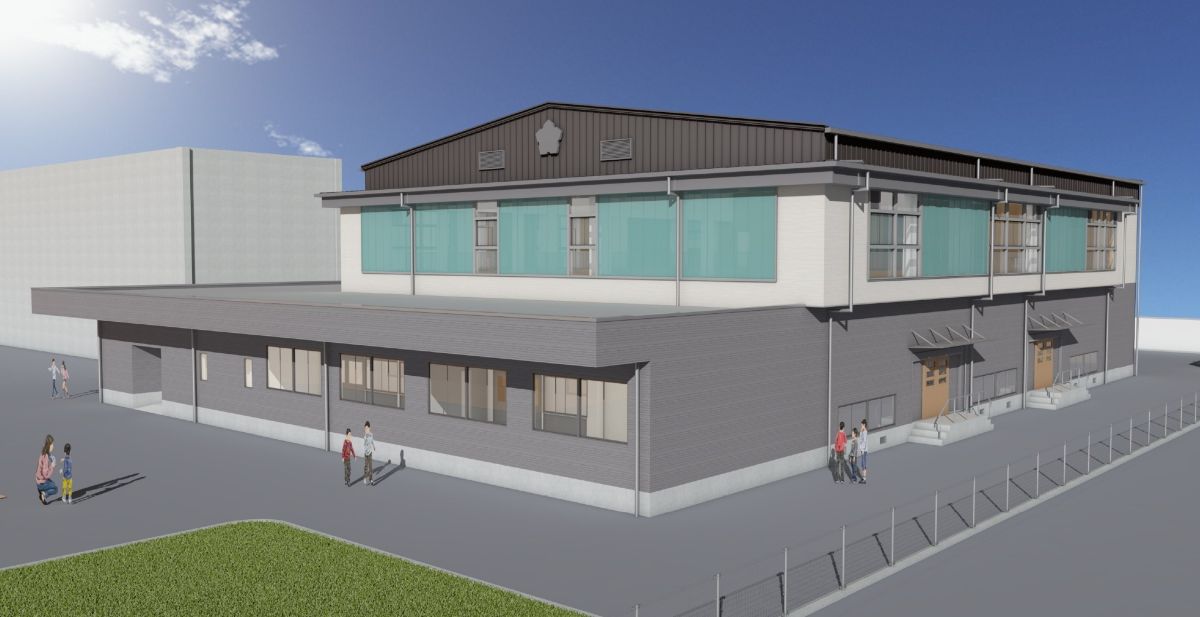 大垣市の小学校屋内運動場改築工事です。 安全に工事ができるよう取り組んでいきます。
